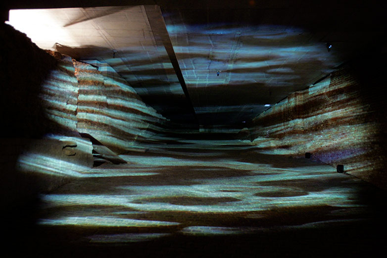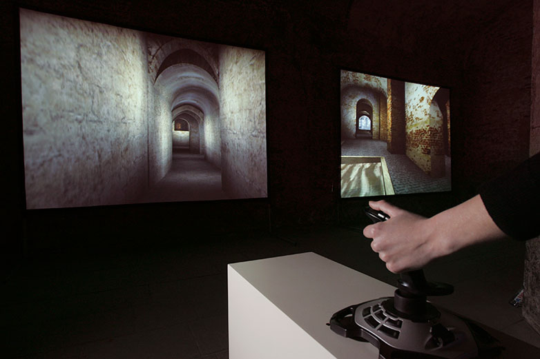 Sited in the subterranean remains of the Coudenberg Palace, Plunged in a Stream is an interactive digital environment created as a response to the city of Brussels, it’s peoples and languages, and the palace’s spectacular archaeological site. Working in collaboration with BT’s research laboratories the artists forensic exploration of the site’s physical features is transferred into a digital construction that viewers navigate and explore virtually. This is a networked environment and the digitised site allows for the virtual interaction of it’s users.